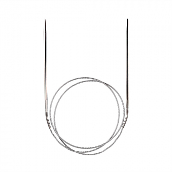 Спицы круговые сделаны из высокопрочной стали. Леска состоит из металлической скрученной проволоки, с пластиковой обмоткой. Соединение лески и спицы гладкое. Спицы имеют покрытие, благодаря, которому петли хорошо скользят по поверхности спиц. Спицы прочные, легкие, гладкие, удобные в использовании. Кончики спиц закругленные, ровные. С помощью круговых спиц выполняют детали, не имеющие швов. Так как вес изделия лучше распределяется именно на таких спицах, то ими очень удобно работать. Короткими круговыми спицами вяжут бейки горловины, воротники-гольф, длинными спицами можно вязать по кругу целые модели.